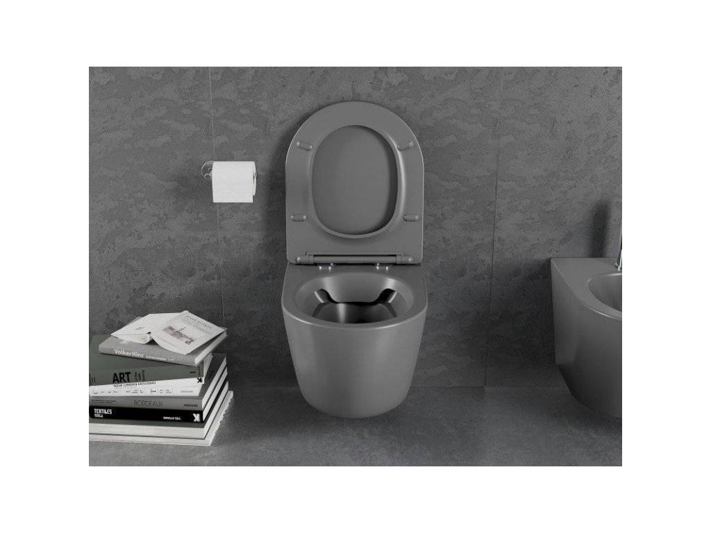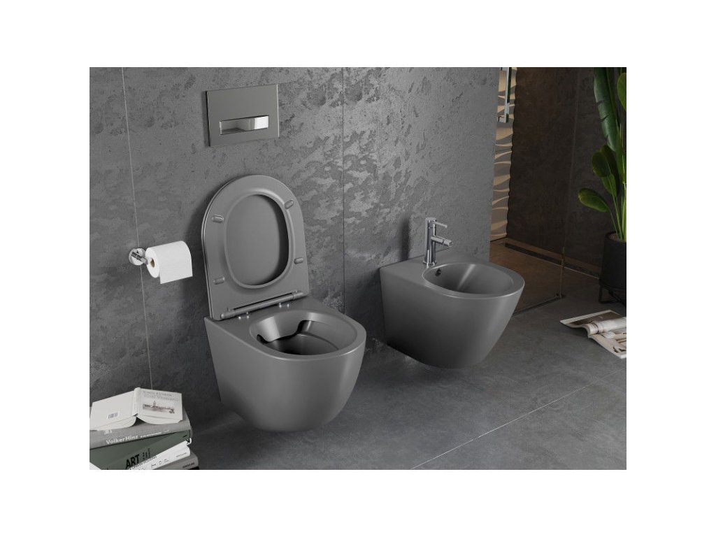 Mexen Lena závesný WC záchod, splachovanie Rimless, s doskou duroplast pomaly padajúcou SLIM, tmavo šedá matná - 30224071