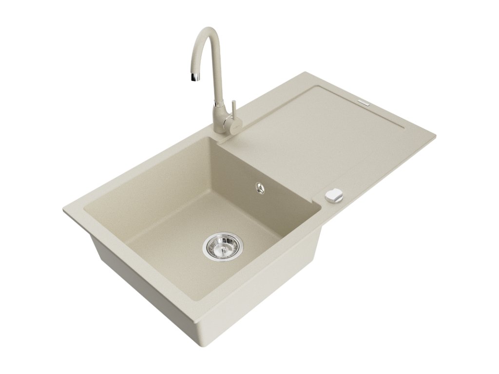 Mexen Leo drez granitový 1-komorový s odkvapkávačom + batéria Telma, béžový - 6501-69-670200-69