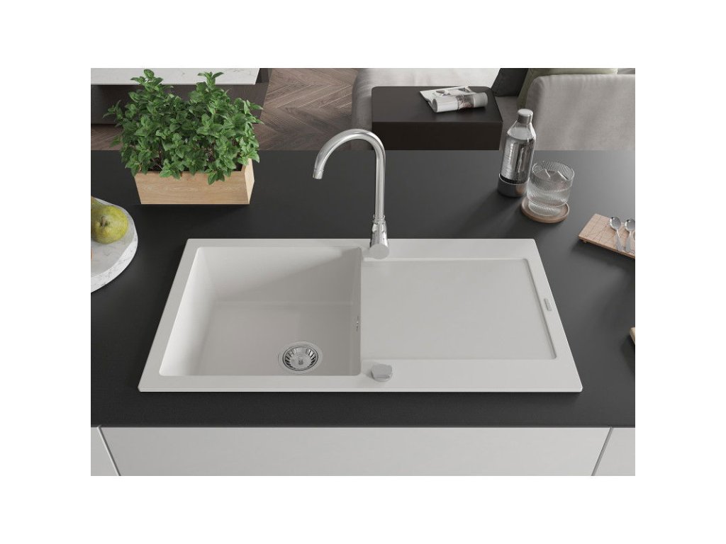 Mexen Leo drez granitový 1-komorový s odkvapkávačom + batéria Telma, biely - 6501-20-670200-00
