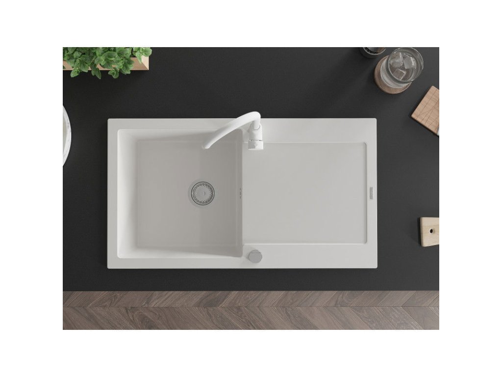 Mexen Leo drez granitový 1-komorový s odkvapkávačom + batéria Telma, biely - 6501-20-670200-20