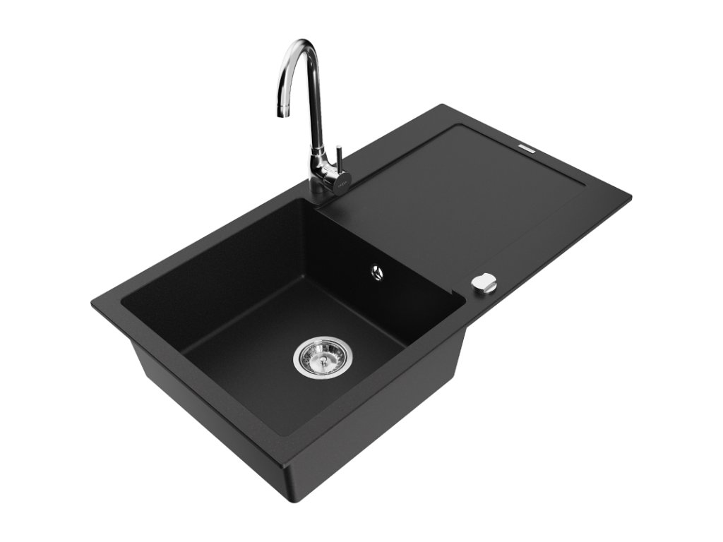 Mexen Leo drez granitový 1-komorový s odkvapkávačom + batéria Telma, čierny - 6501-77-670200-00