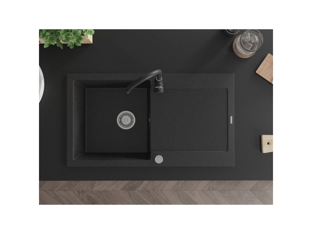 Mexen Leo drez granitový 1-komorový s odkvapkávačom + batéria Telma, čierny/strieborná metalíza - 6501-73-670200-70
