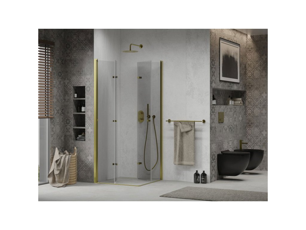 Mexen Lima Duo sprchový kút skladací 100 x 100 cm, priehľadné sklo, profil zlatý - 856-100-100-50-00-02