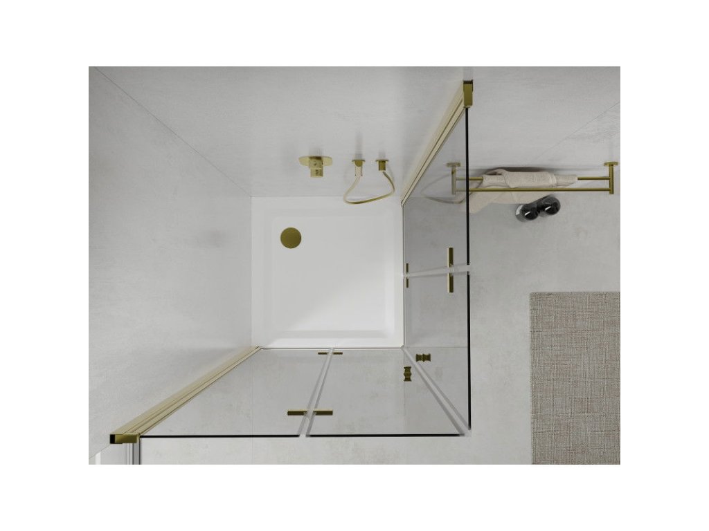 Mexen Lima Duo sprchový kút skladací 100 x 100 cm, priehľadné sklo, profil zlatý + Flat sprchová vanička, biela - 856-100-100-50-02-4010G