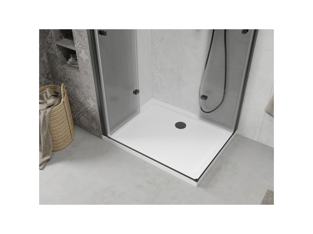 Mexen Lima Duo sprchový kút skladací 100 x 90 cm, priehľadné sklo, profil čierny + Flat sprchová vanička, biela - 856-100-090-70-02-4010B