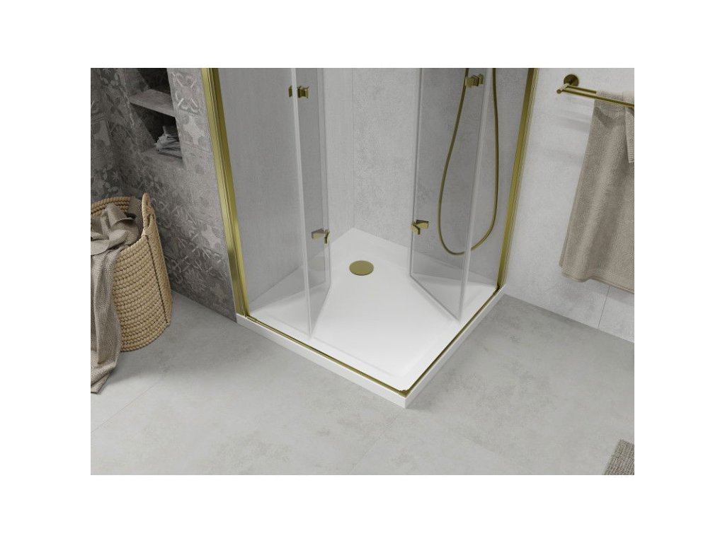 Mexen Lima Duo sprchový kút skladací 70 x 70 cm, priehľadné sklo, profil zlatý + Flat sprchová vanička, biela - 856-070-070-50-02-4010G