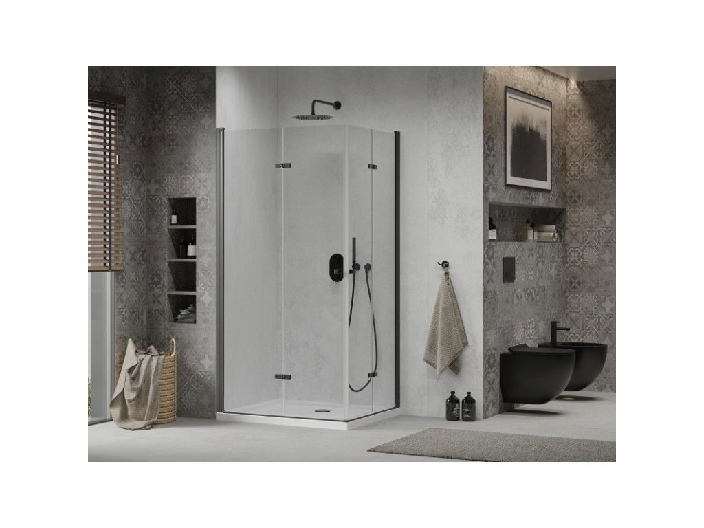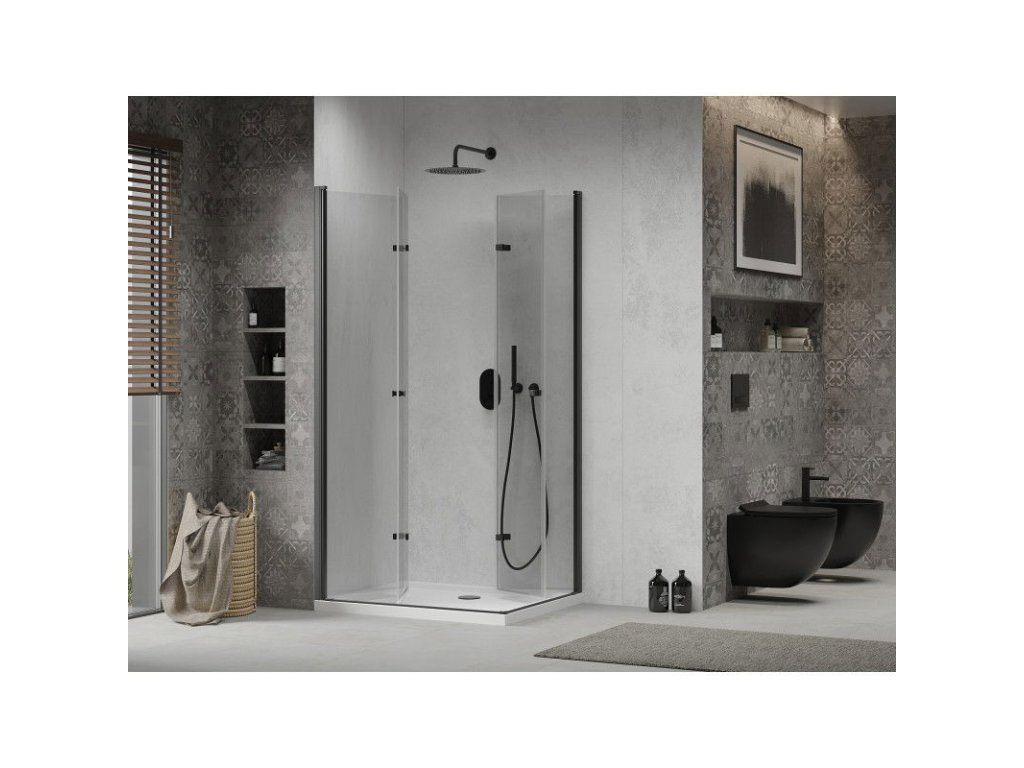 Mexen Lima Duo sprchový kút skladací 80 x 70 cm, priehľadné sklo, profil čierny + Flat sprchová vanička, biela - 856-080-070-70-02-4010B