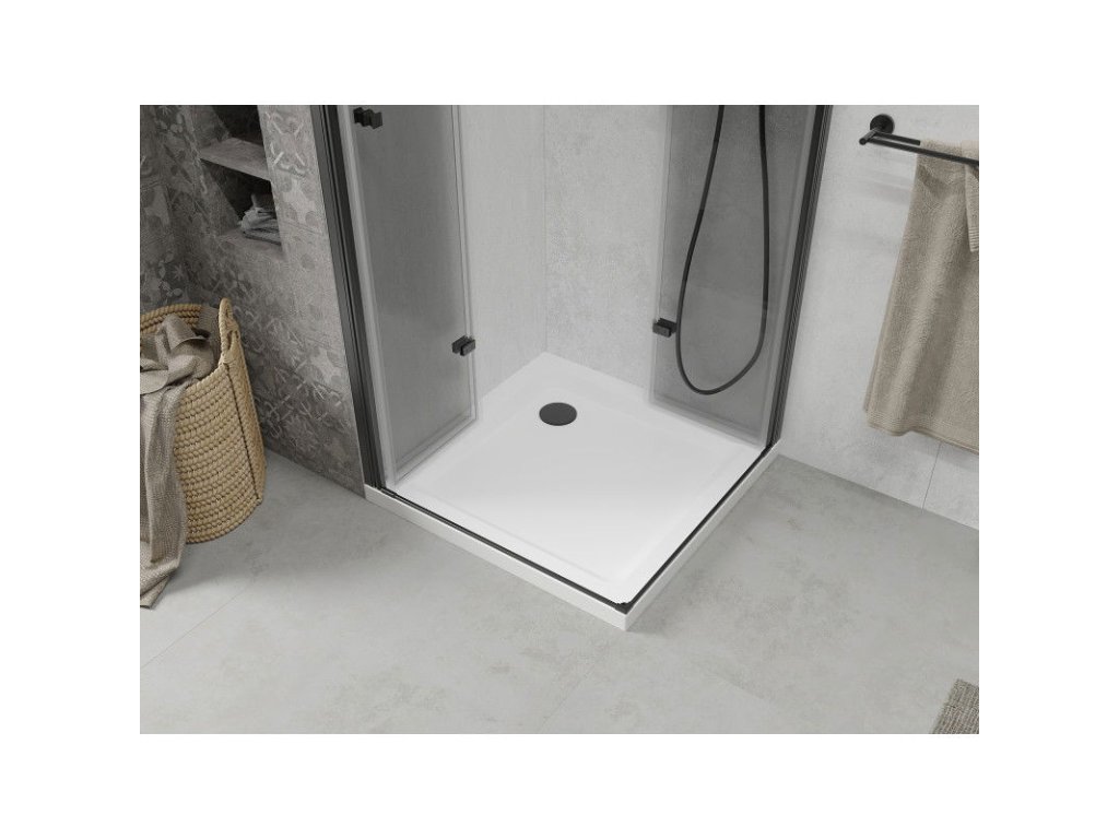 Mexen Lima Duo sprchový kút skladací 80 x 80 cm, priehľadné sklo, profil čierny + Flat sprchová vanička, biela - 856-080-080-70-02-4010B