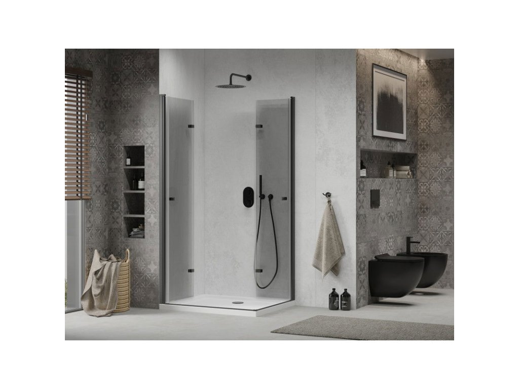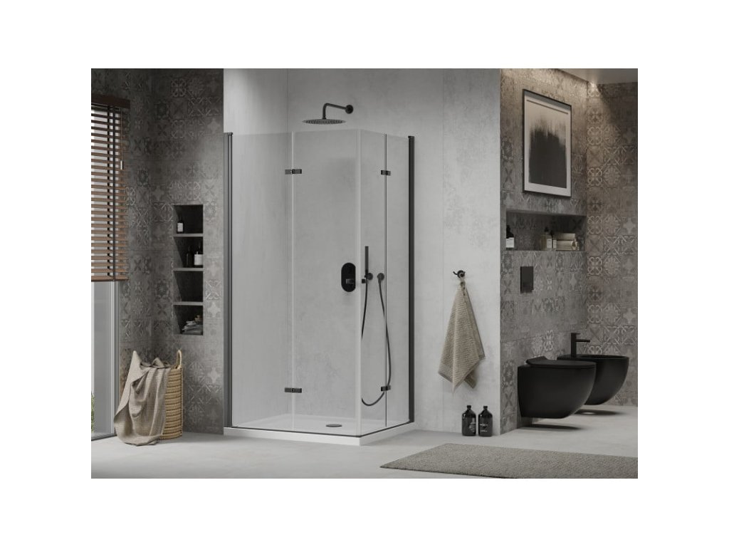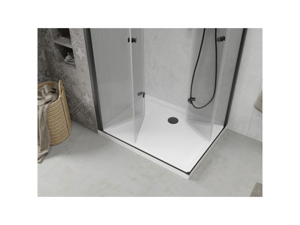 Mexen Lima Duo sprchový kút skladací 90 x 80 cm, priehľadné sklo, profil čierny + Flat sprchová vanička, biela - 856-090-080-70-02-4010B