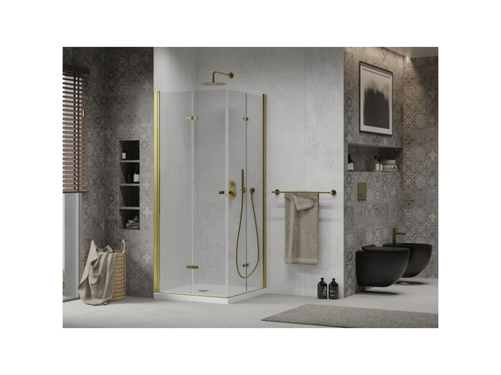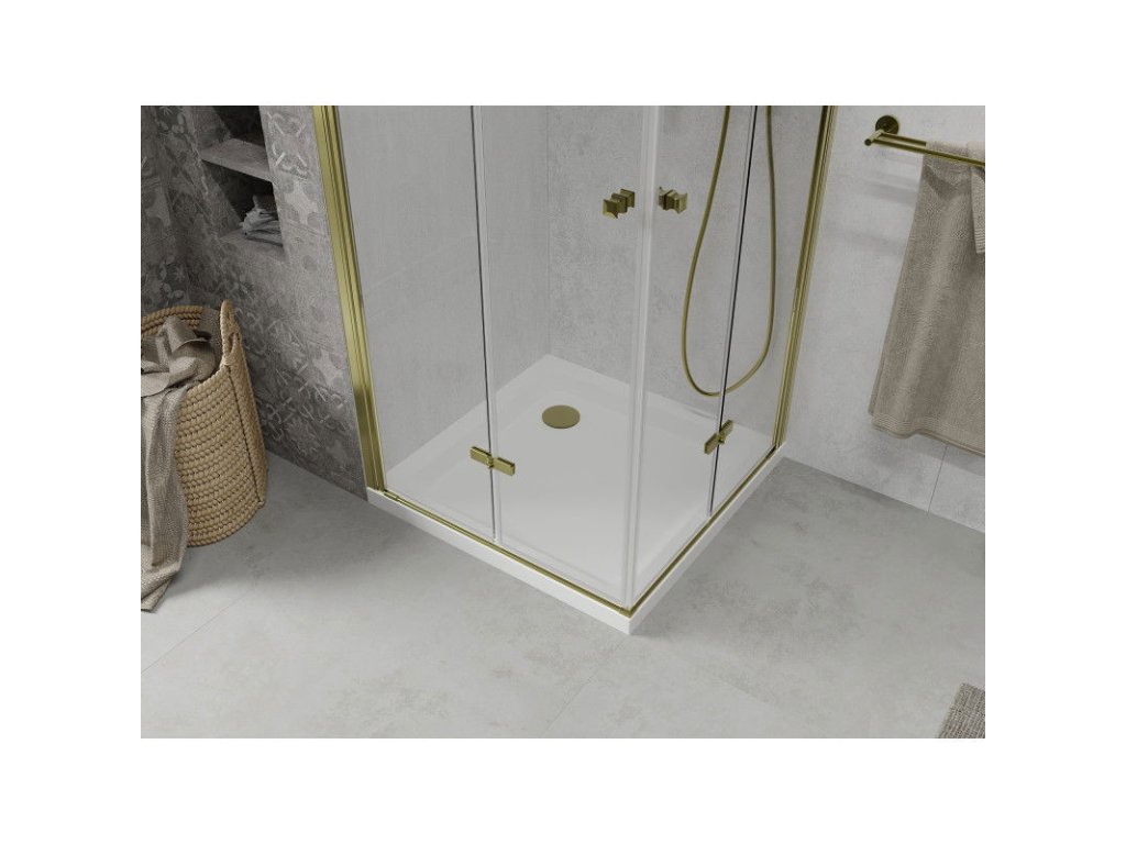 Mexen Lima Duo sprchový kút skladací 90 x 90 cm, priehľadné sklo, profil zlatý + Flat sprchová vanička, biela - 856-090-090-50-02-4010G