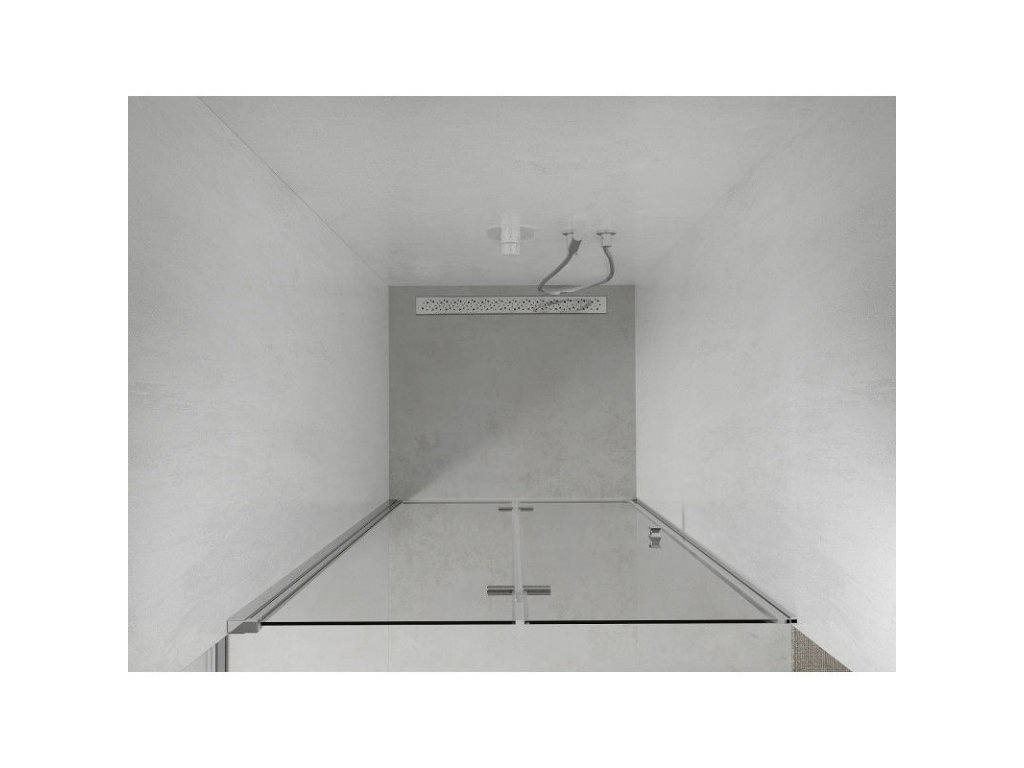 \nTechnické údaje: rozmery: 100x190 cm montáž: univerzálna Ľ+P vstup: skladacie dvere farba skla: priehľadný - transparent typ skla: tvrdené - bezpečnostné hrúbka skla: 6 mm profil: hliník povrchová uprava: chróm povlak pre ľahké čistenie : áno vyrovnanie nerovností steny: áno nastavenie šírky: áno montáž na dlažbu alebo sprchovú vaničku: áno kovová rukoväť sada tesnení na odvod vody hliníkový prah dveríDodatočné parametre
