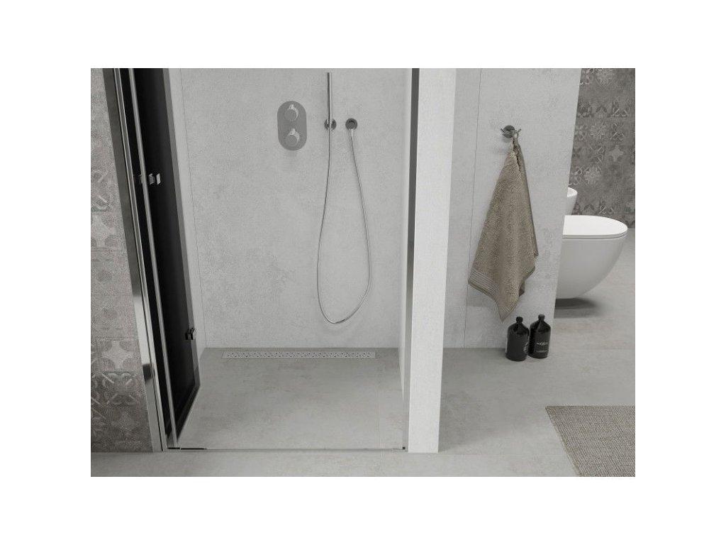 \nTechnické údaje: rozmery: 110x190 cm montáž: univerzálna Ľ+P vstup: skladacie dvere farba skla: šedé sklo typ skla: tvrdené - bezpečnostné hrúbka skla: 6 mm profil: hliník povrchová uprava: chróm povlak pre ľahké čistenie : áno vyrovnanie nerovností steny: áno nastavenie šírky: áno montáž na dlažbu alebo sprchovú vaničku: áno kovová rukoväť sada tesnení na odvod vody hliníkový prah dveríDodatočné parametre
