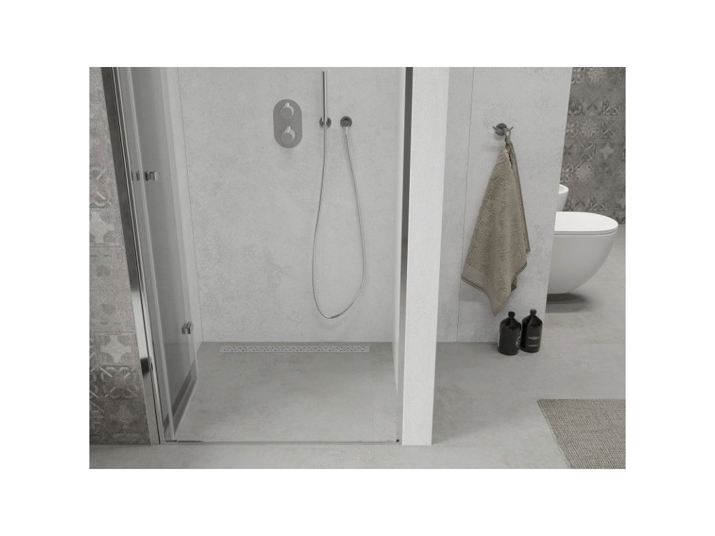 \nTechnické údaje: rozmery: 80x190 cm montáž: univerzálna Ľ+P vstup: skladacie dvere farba skla: priehľadný - transparent typ skla: tvrdené - bezpečnostné hrúbka skla: 6 mm profil: hliník povrchová uprava: chróm povlak pre ľahké čistenie : áno vyrovnanie nerovností steny: áno nastavenie šírky: áno montáž na dlažbu alebo sprchovú vaničku: áno kovová rukoväť sada tesnení na odvod vody hliníkový prah dveríDodatočné parametre