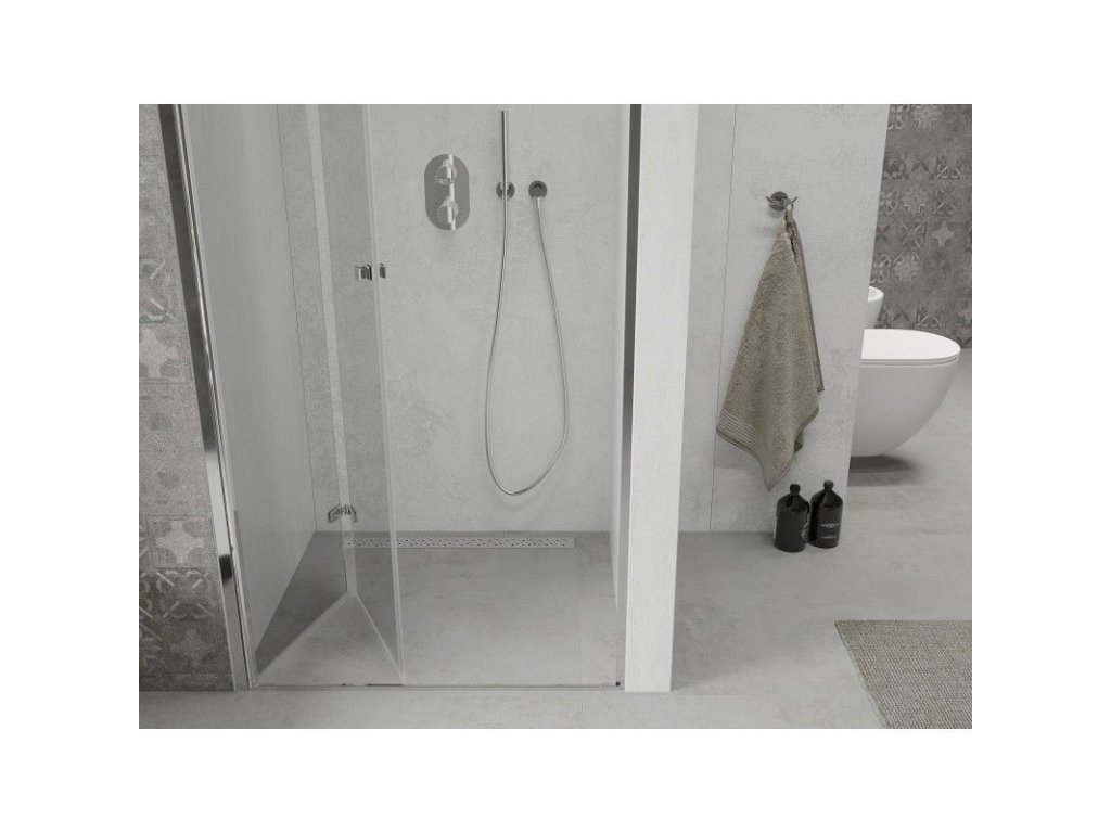 \nTechnické údaje: rozmery: 95x190 cm montáž: univerzálna Ľ+P vstup: skladacie dvere farba skla: priehľadný - transparent typ skla: tvrdené - bezpečnostné hrúbka skla: 6 mm profil: hliník povrchová uprava: chróm povlak pre ľahké čistenie : áno vyrovnanie nerovností steny: áno nastavenie šírky: áno montáž na dlažbu alebo sprchovú vaničku: áno kovová rukoväť sada tesnení na odvod vody hliníkový prah dveríDodatočné parametre