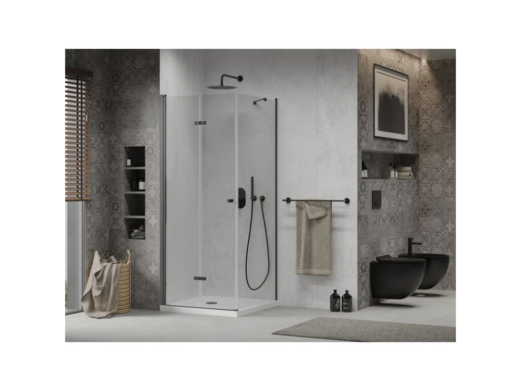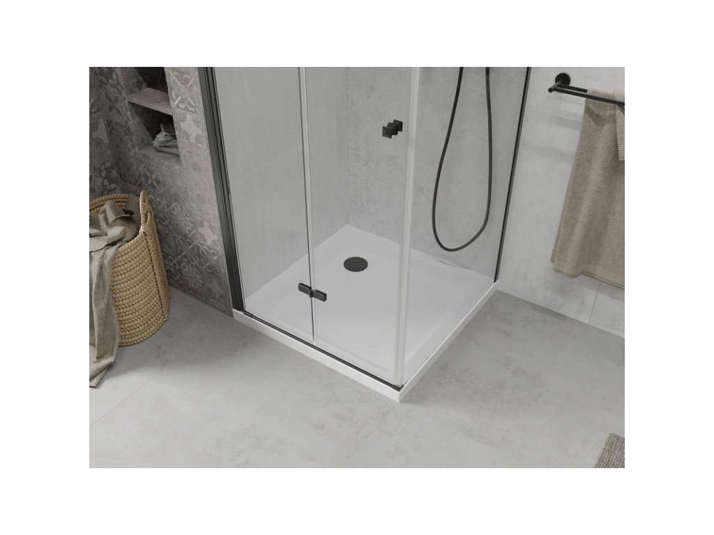 Mexen Lima sprchový kút skladací 100 x 100 cm, priehľadné sklo, profil čierny + Flat sprchová vanička, biela - 856-100-100-70-00-4010B