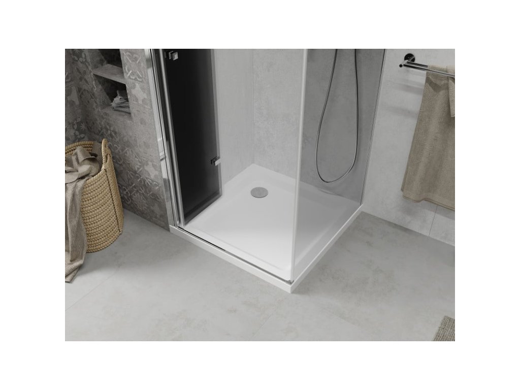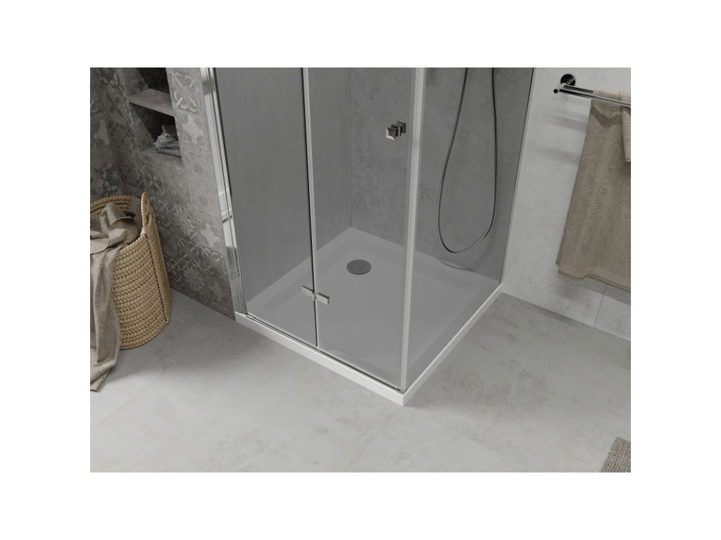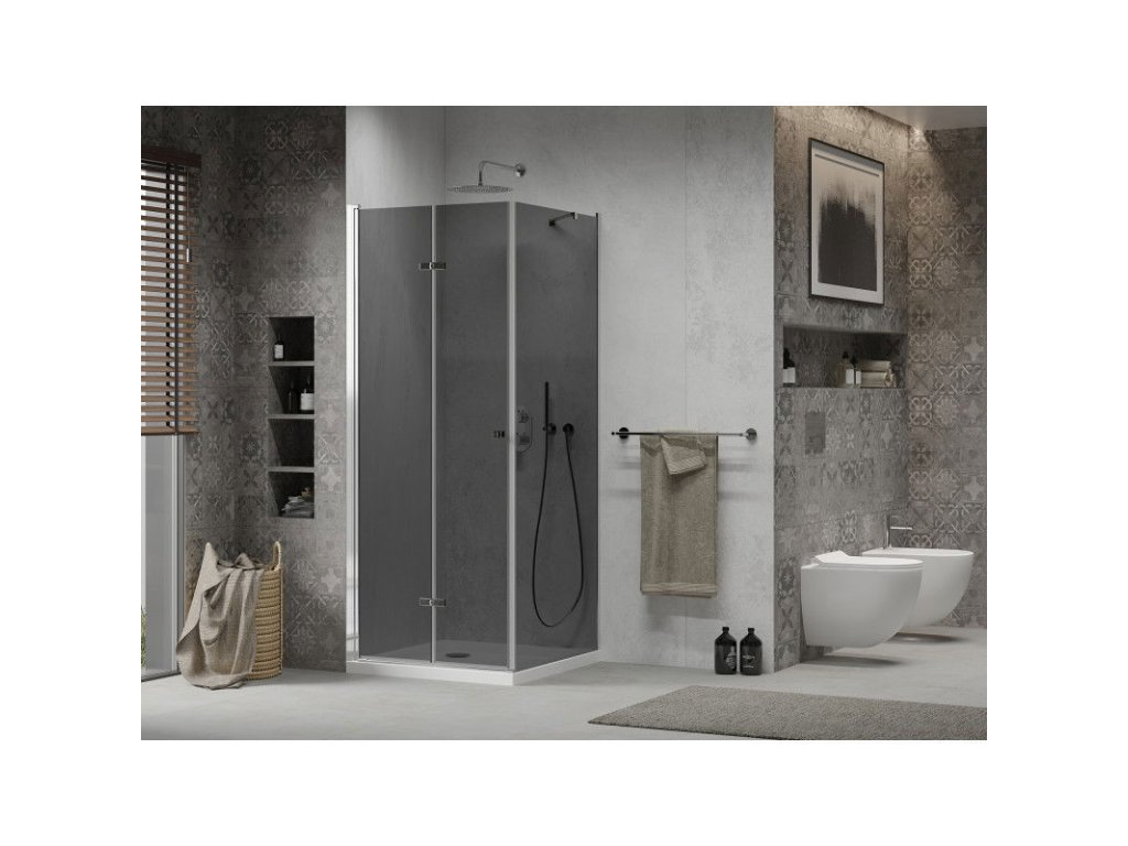 Mexen Lima sprchový kút skladací 100 x 100 cm, šedé sklo, profil chróm + Flat sprchová vanička, biela - 856-100-100-01-40-4010