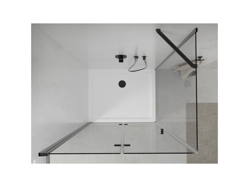 Mexen Lima sprchový kút skladací 100 x 70 cm, priehľadné sklo, profil čierny + Flat sprchová vanička, biela - 856-100-070-70-00-4010B