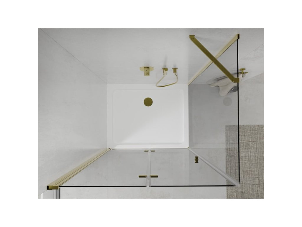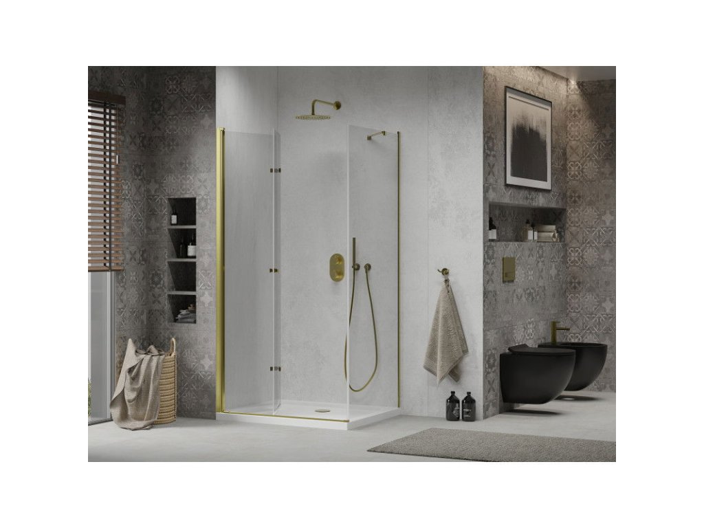 Mexen Lima sprchový kút skladací 100 x 70 cm, priehľadné sklo, profil zlatý + Flat sprchová vanička, biela - 856-100-070-50-00-4010