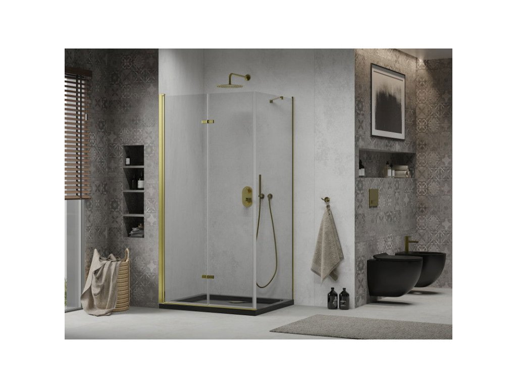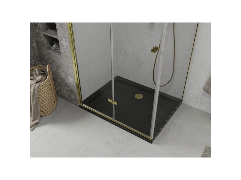 Mexen Lima sprchový kút skladací 100 x 80 cm, priehľadné sklo, profil zlatý + Flat sprchová vanička, čierna - 856-100-080-50-00-4070G