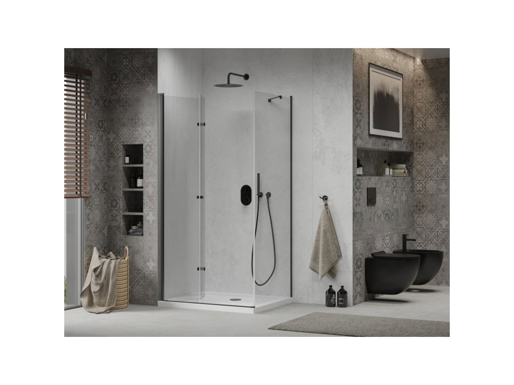 Mexen Lima sprchový kút skladací 120 x 70 cm, priehľadné sklo, profil čierny + Flat sprchová vanička, biela - 856-120-070-70-00-4010B