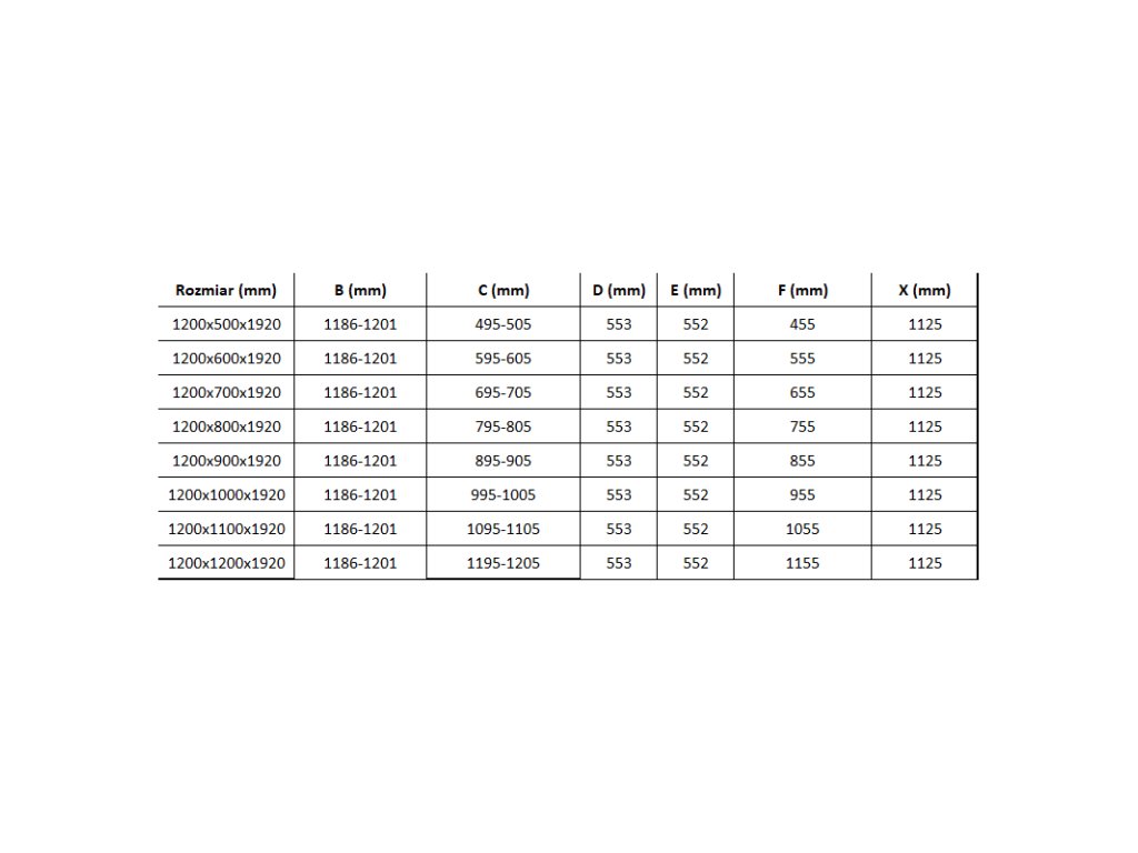 rozmery: 120x90 cm (dvere 120 cm, fixná stena 90 cm)