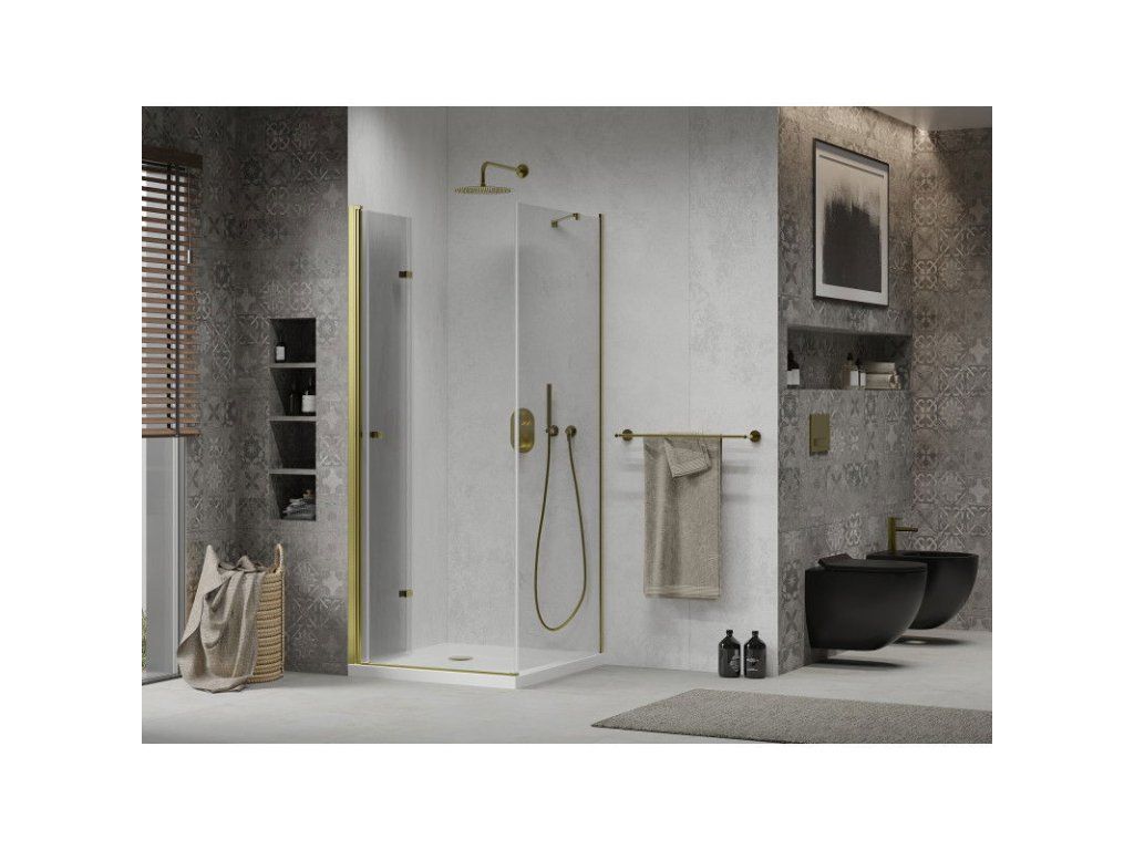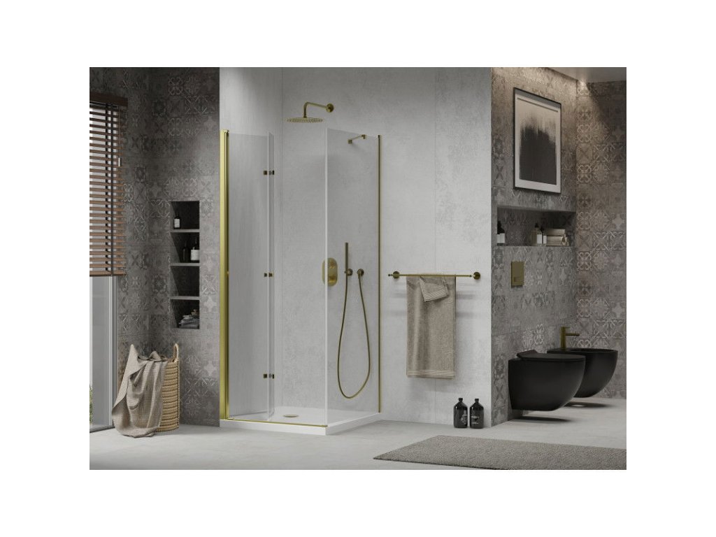 Mexen Lima sprchový kút skladací 70 x 70 cm, priehľadné sklo, profil zlatý + Flat sprchová vanička, biela - 856-070-070-50-00-4010