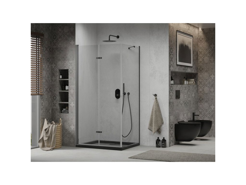 Mexen Lima sprchový kút skladací 80 x 100 cm, priehľadné sklo, čierna + Flat sprchová vanička, čierna - 856-080-100-70-00-4070B