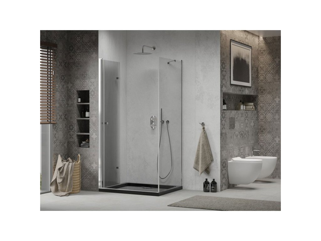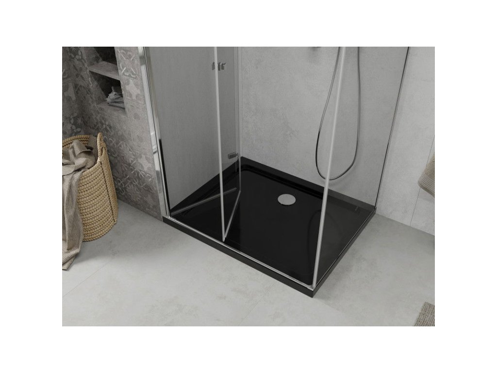 Mexen Lima sprchový kút skladací 80 x 100 cm, priehľadné sklo, profil chróm + Flat sprchová vanička, čierna - 856-080-100-01-00-4070