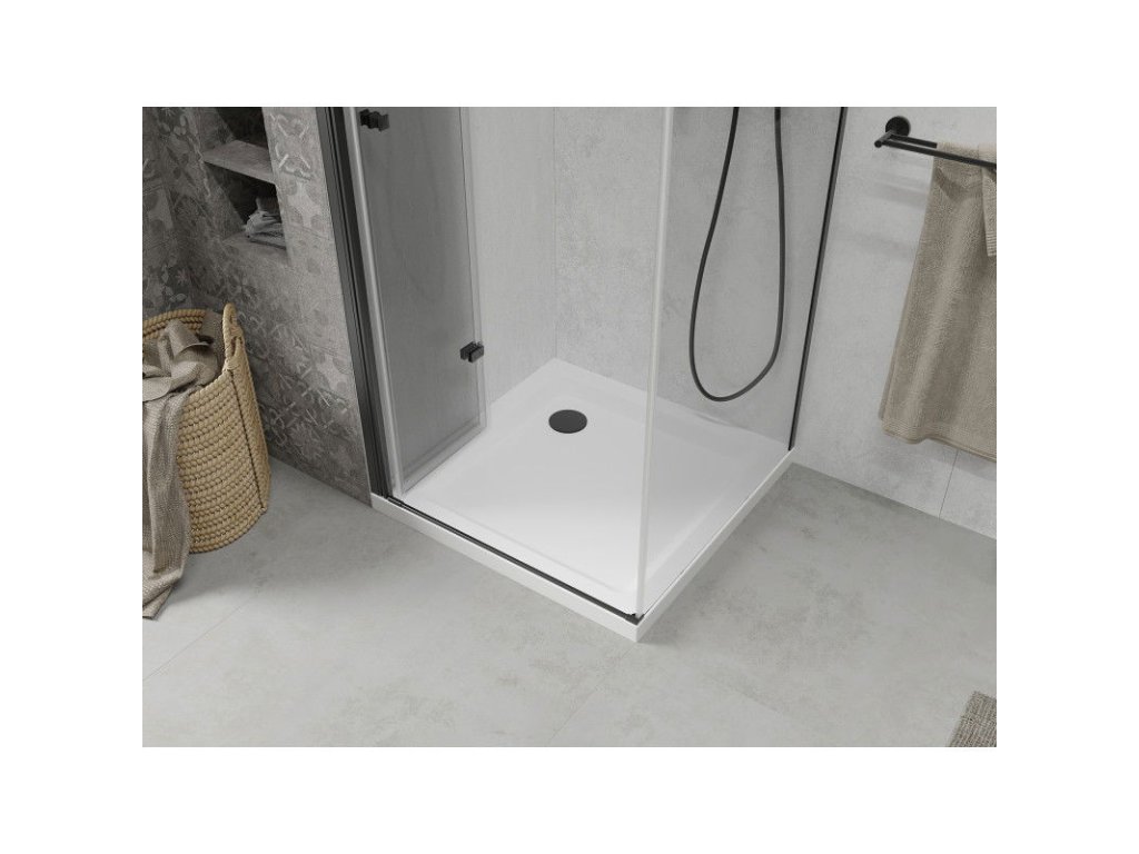 Mexen Lima sprchový kút skladací 80 x 80 cm, priehľadné sklo, profil čierny + Flat sprchová vanička, biela - 856-080-080-70-00-4010B
