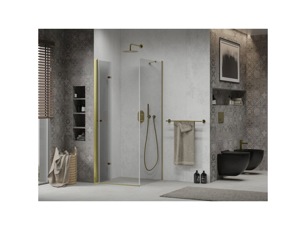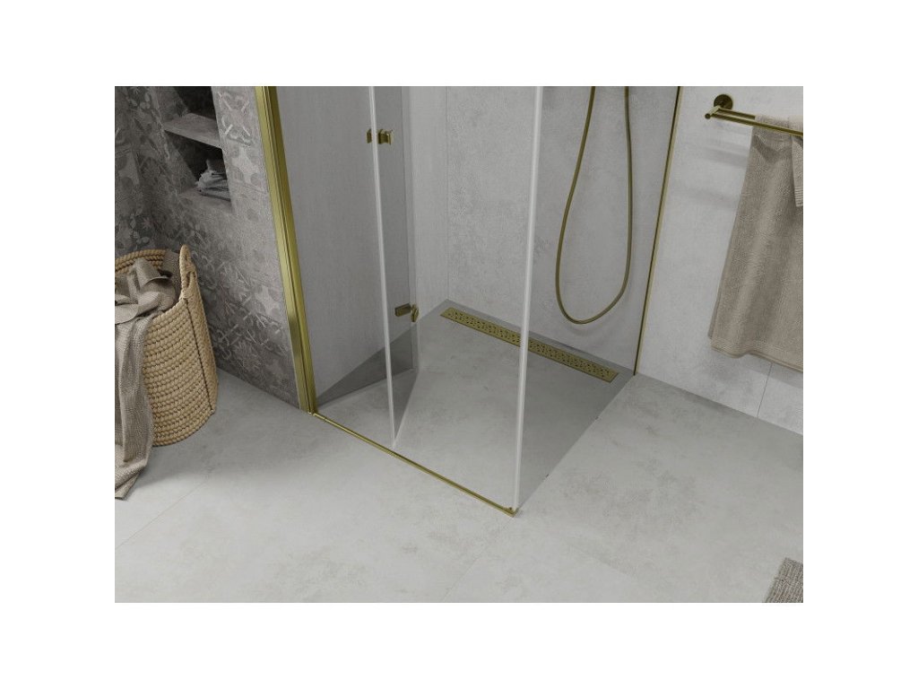 Mexen Lima sprchový kút skladací 80 x 80 cm, priehľadné sklo, profil zlatý - 856-080-080-50-00