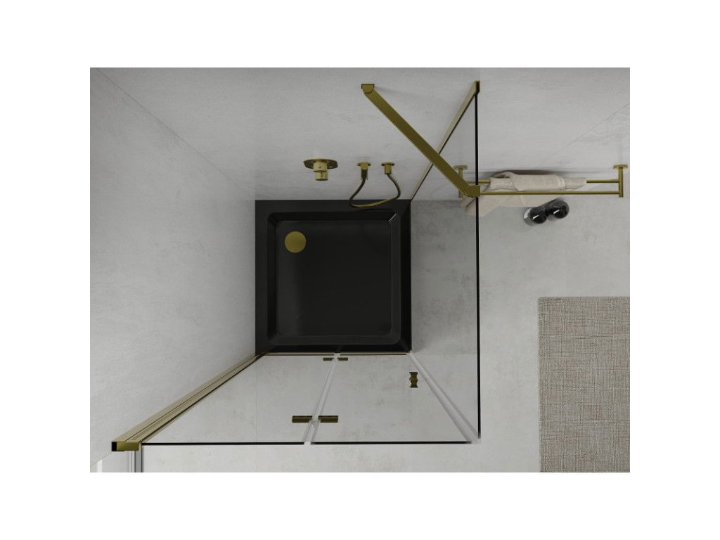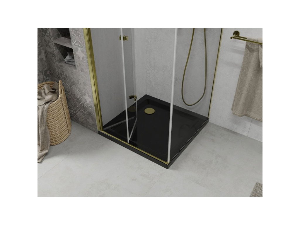 Mexen Lima sprchový kút skladací 80 x 80 cm, priehľadné sklo, profil zlatý + Flat sprchová vanička, čierna - 856-080-080-50-00-4070G