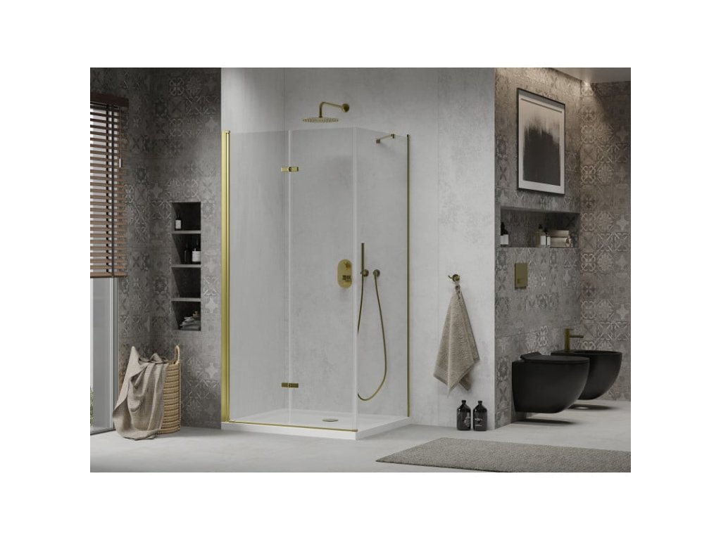 Mexen Lima sprchový kút skladací 80 x 90 cm, priehľadné sklo, profil zlatý + Flat sprchová vanička, biela - 856-080-090-50-00-4010