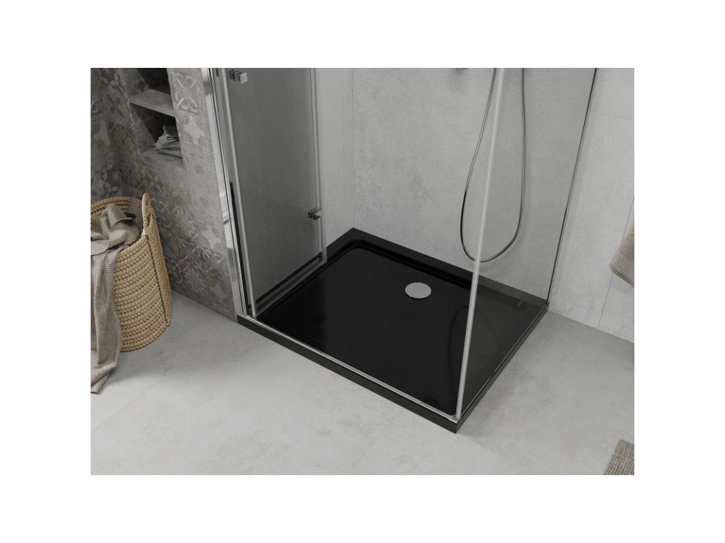 Mexen Lima sprchový kút skladací 90 x 100 cm, priehľadné sklo, profil chróm + Flat sprchová vanička, čierna - 856-090-100-01-00-4070