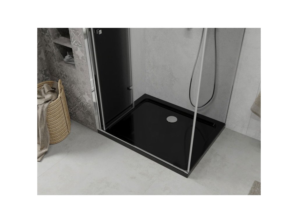 Mexen Lima sprchový kút skladací 90 x 120 cm, šedé sklo, profil chróm + Flat sprchová vanička, čierna - 856-090-120-01-40-4070