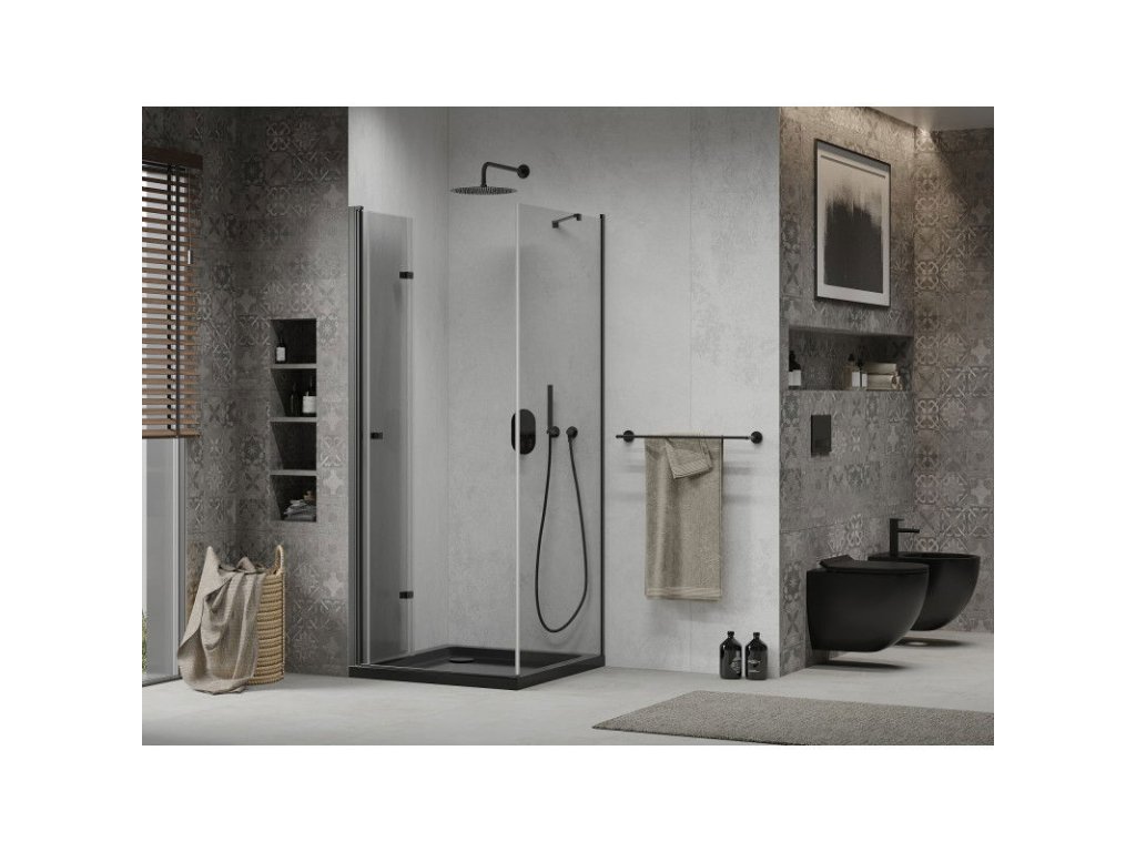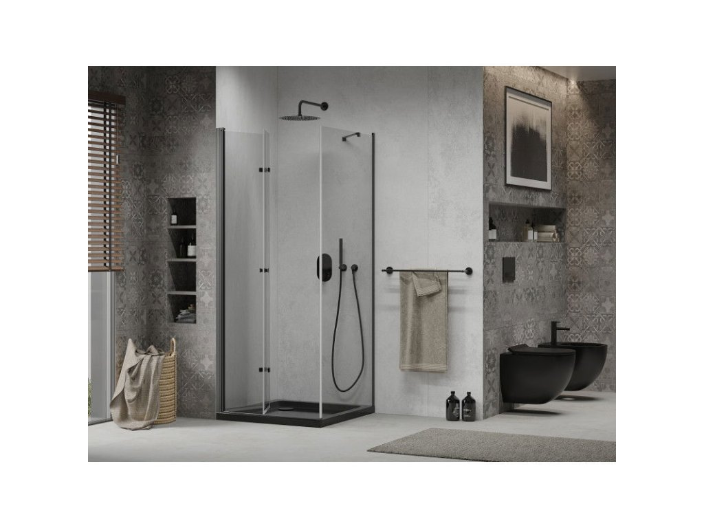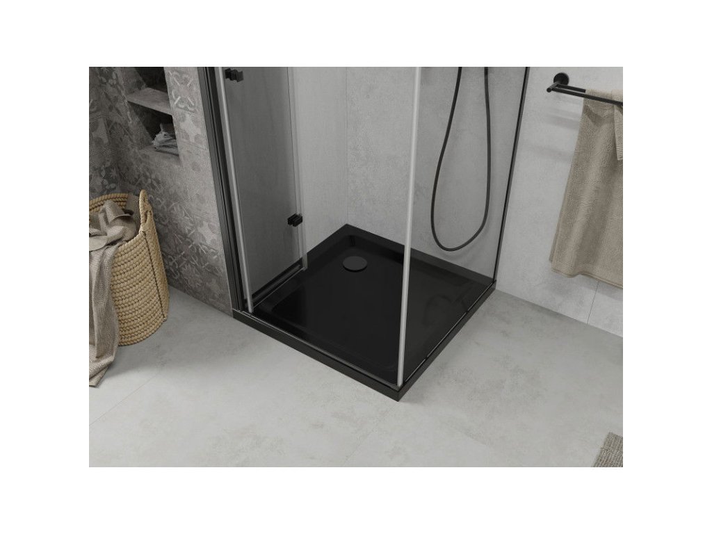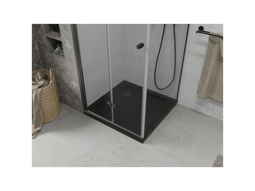 Mexen Lima sprchový kút skladací 90 x 90 cm, priehľadné sklo, čierna + Flat sprchová vanička, čierna - 856-090-090-70-00-4070B