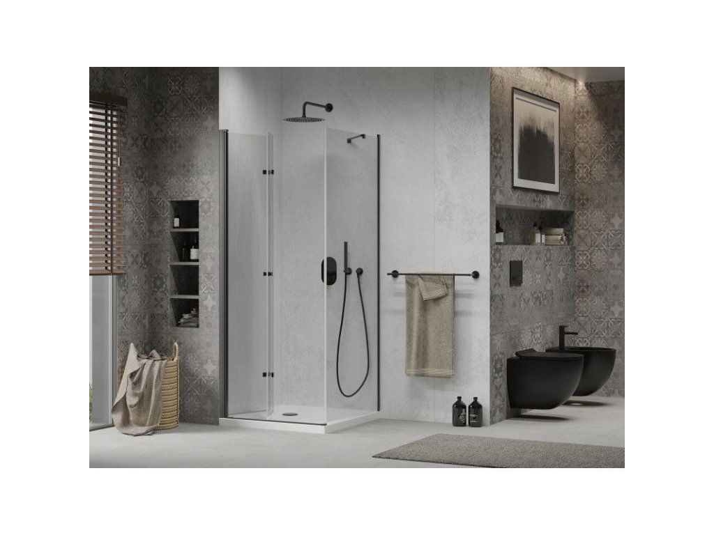 Mexen Lima sprchový kút skladací 90 x 90 cm, priehľadné sklo, profil čierny + Flat sprchová vanička, biela - 856-090-090-70-00-4010B