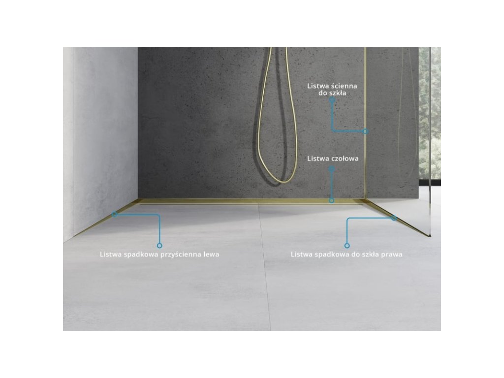 Soklová lišta dopĺňa použitie spádovej lišty a vytvára v sprchovacom kúte jednotný celok