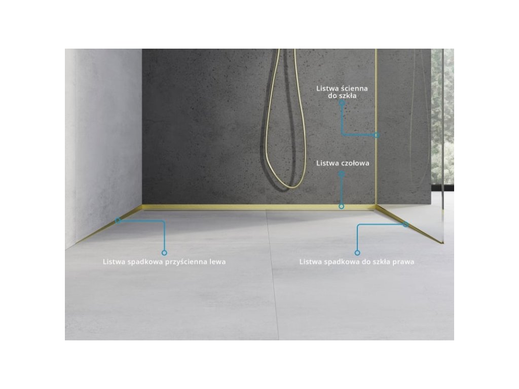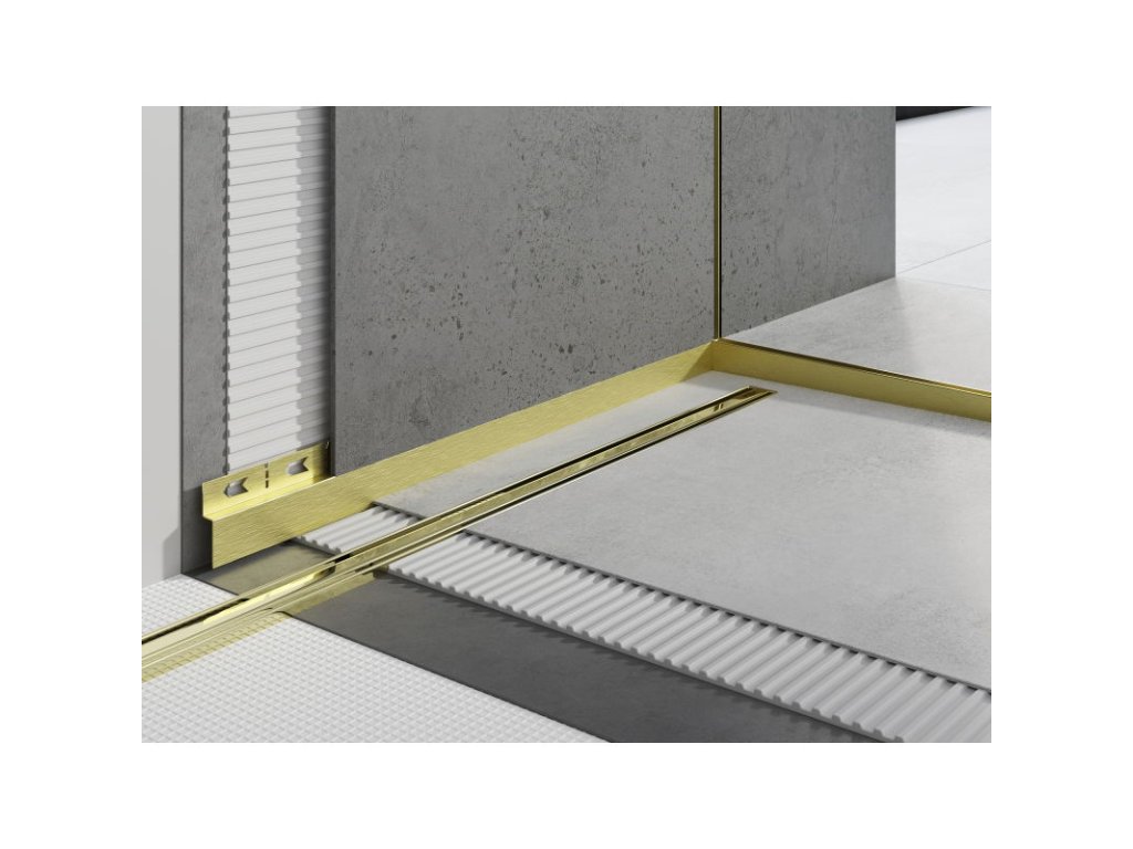 Soklová lišta dopĺňa použitie spádovej lišty a vytvára v sprchovacom kúte jednotný celok