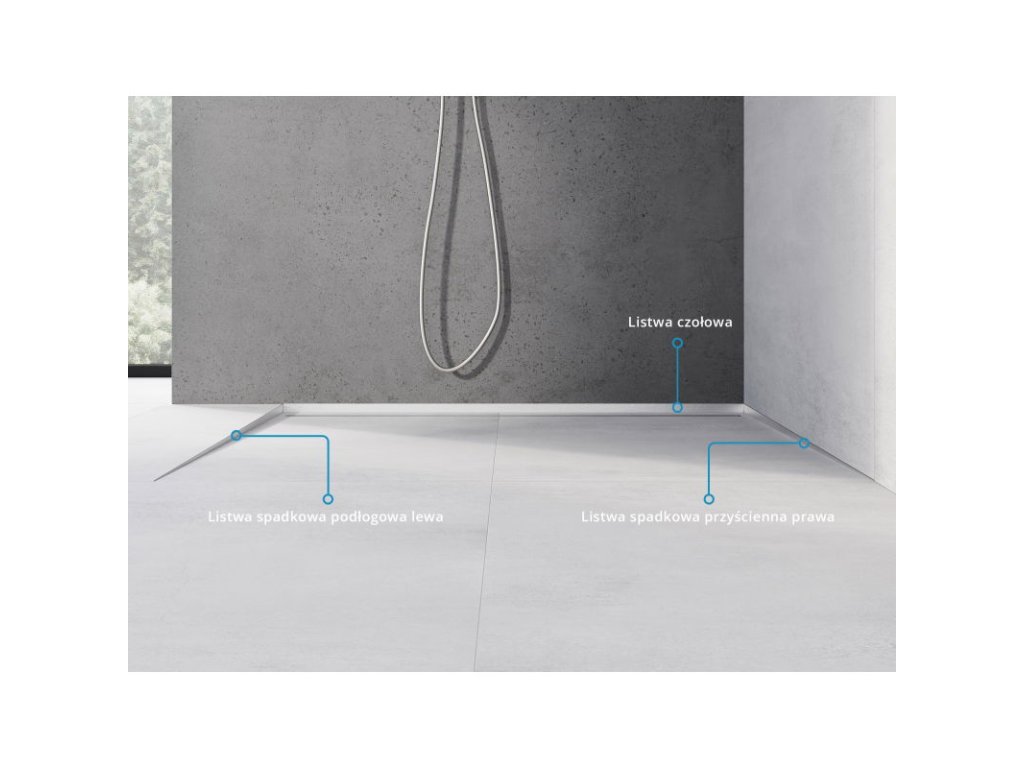 Bočná hrana lišty núti k jednostrannému spádu do lineárneho odtoku bez potreby tzv. obálky