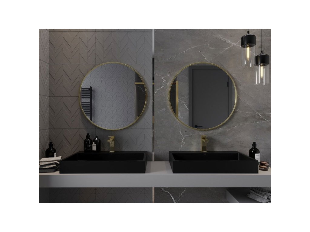 Mexen Loft okrúhle kúpeľňové zrkadlo 75 cm, zlatý rám - 9850-075-075-000-50