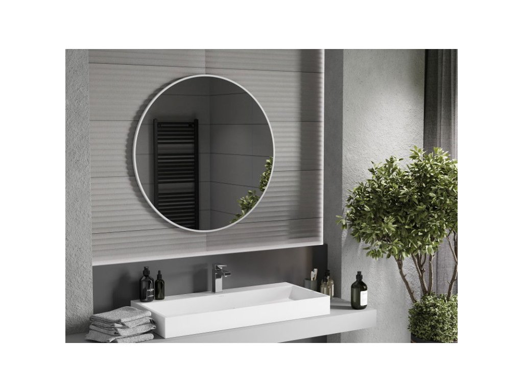 Mexen Loft okrúhle kúpeľňové zrkadlo 90 cm, biely rám - 9850-090-090-000-20