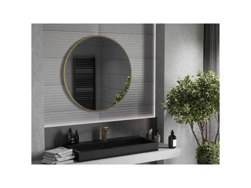 Mexen Loft okrúhle kúpeľňové zrkadlo 90 cm, zlatý rám - 9850-090-090-000-50