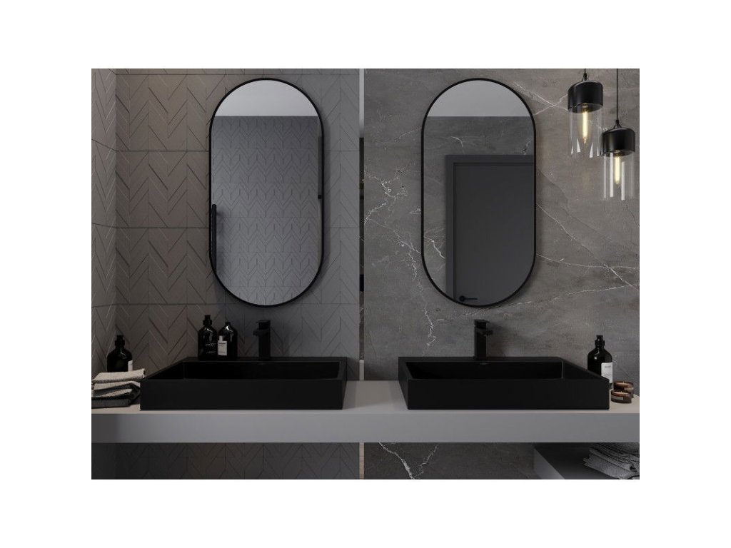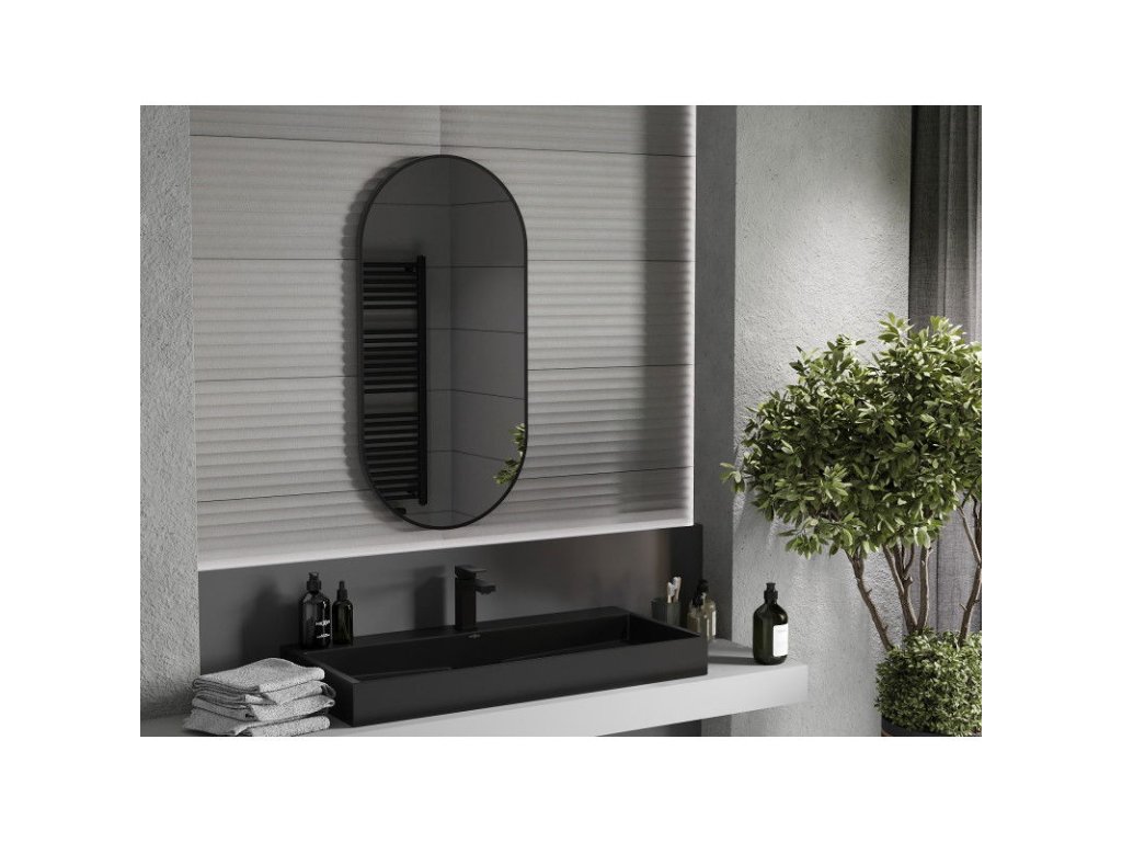 Mexen Loft oválne kúpeľňové zrkadlo 100 x 50 cm, čierny rám - 9851-100-050-000-70
