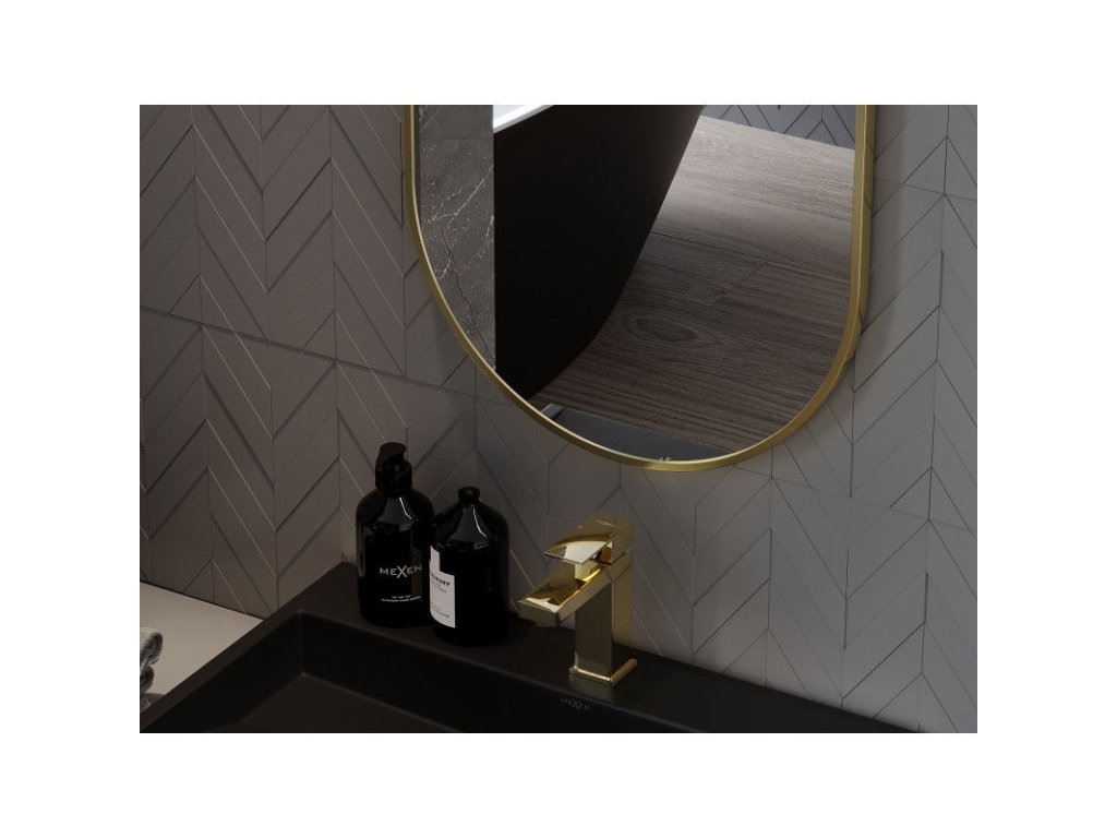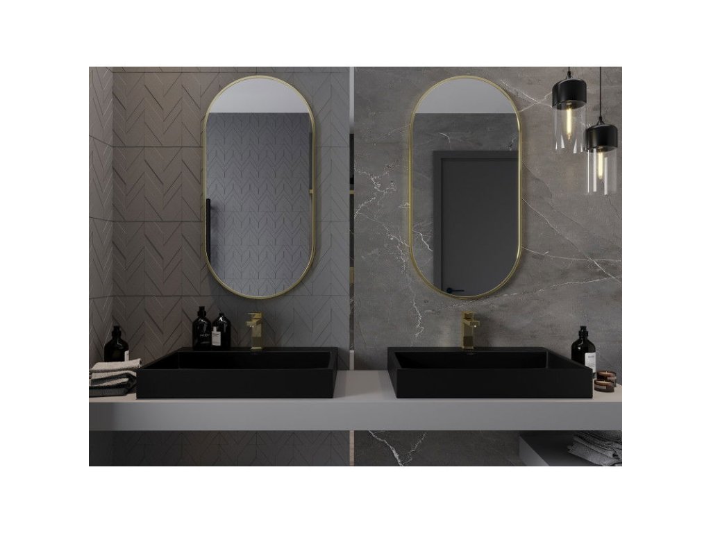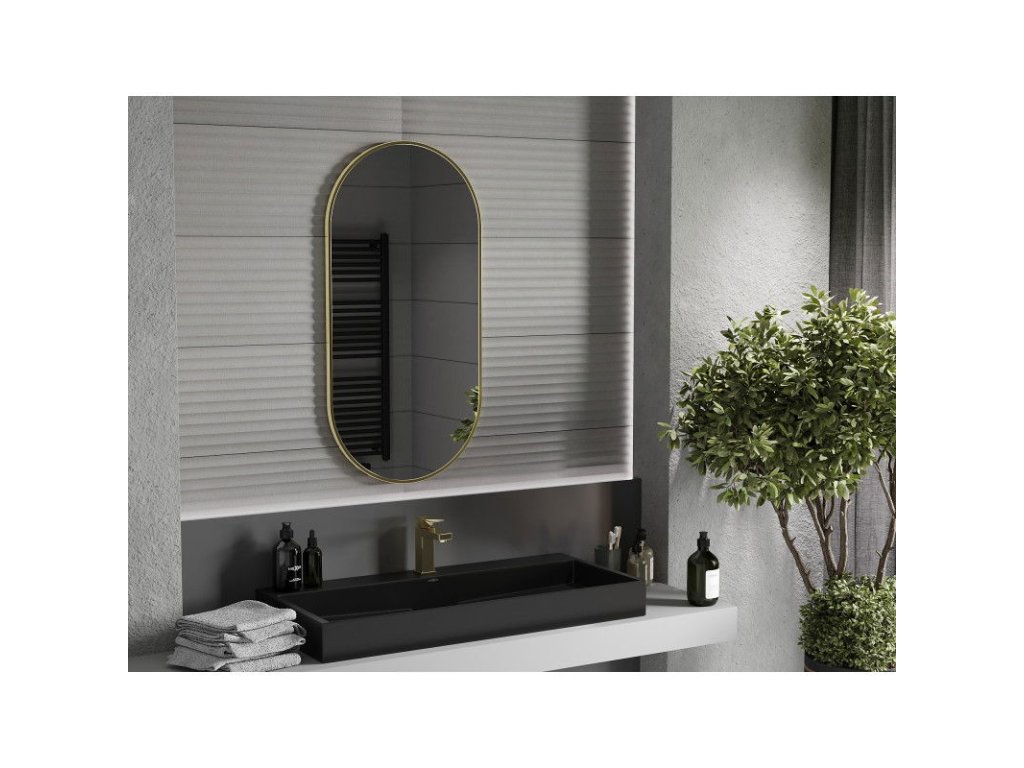 Mexen Loft oválne kúpeľňové zrkadlo 100 x 50 cm, zlatý rám - 9851-100-050-000-50