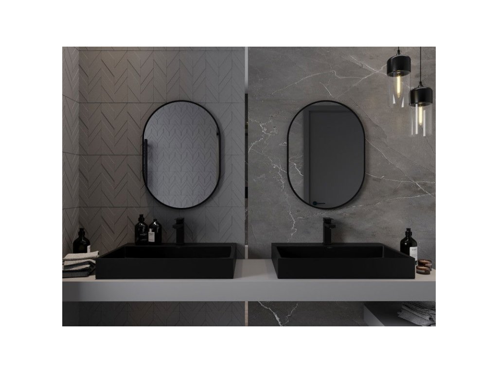 Mexen Loft oválne kúpeľňové zrkadlo 70 x 50 cm, čierny rám - 9851-070-050-000-70