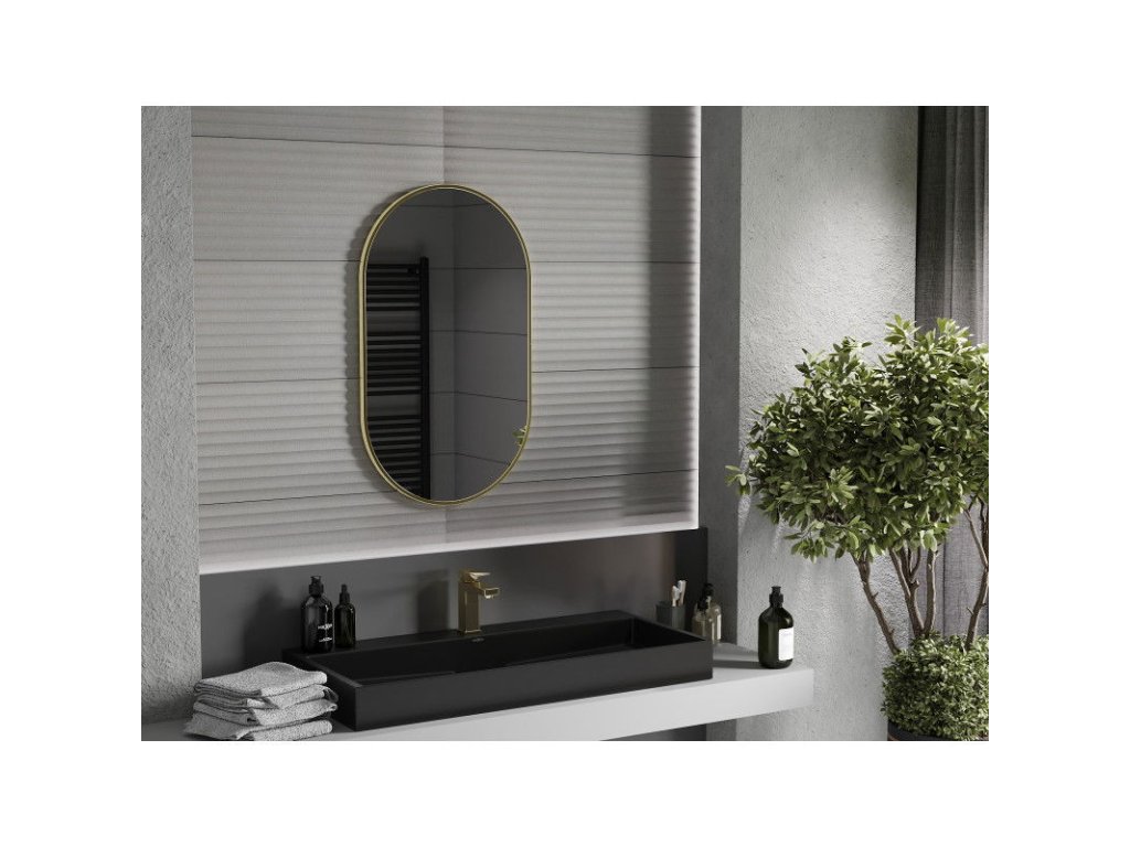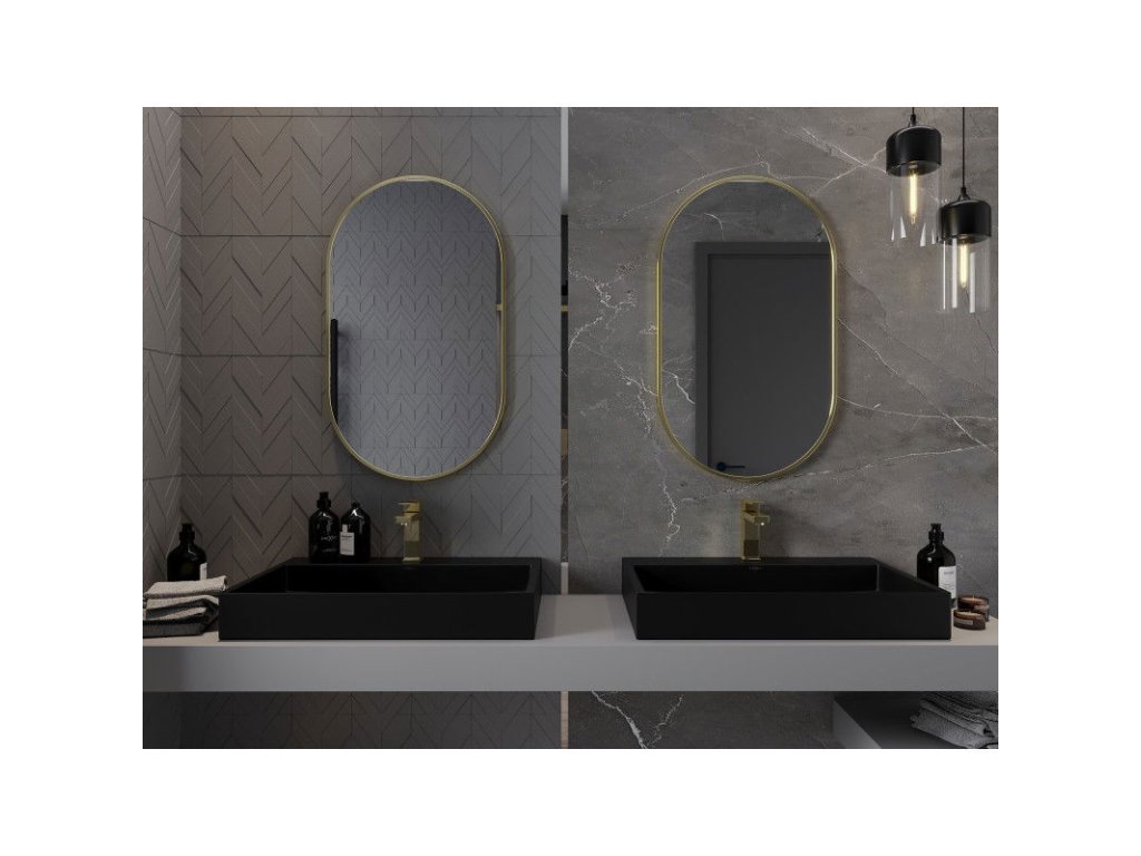 Mexen Loft oválne kúpeľňové zrkadlo 85 x 50 cm, zlatý rám - 9851-085-050-000-50