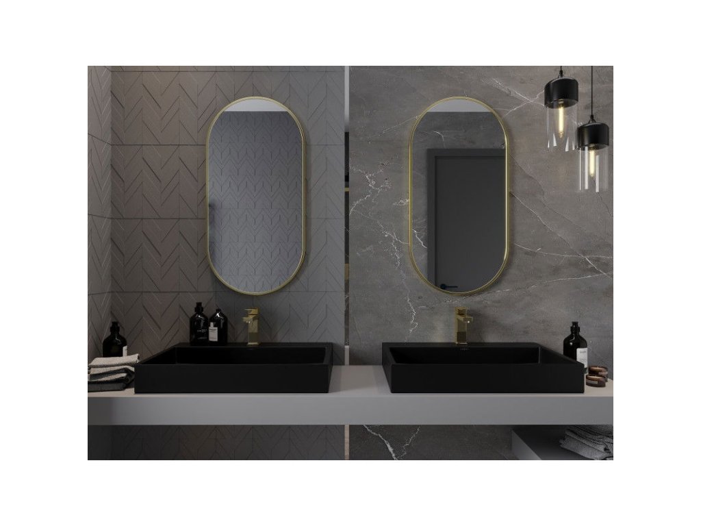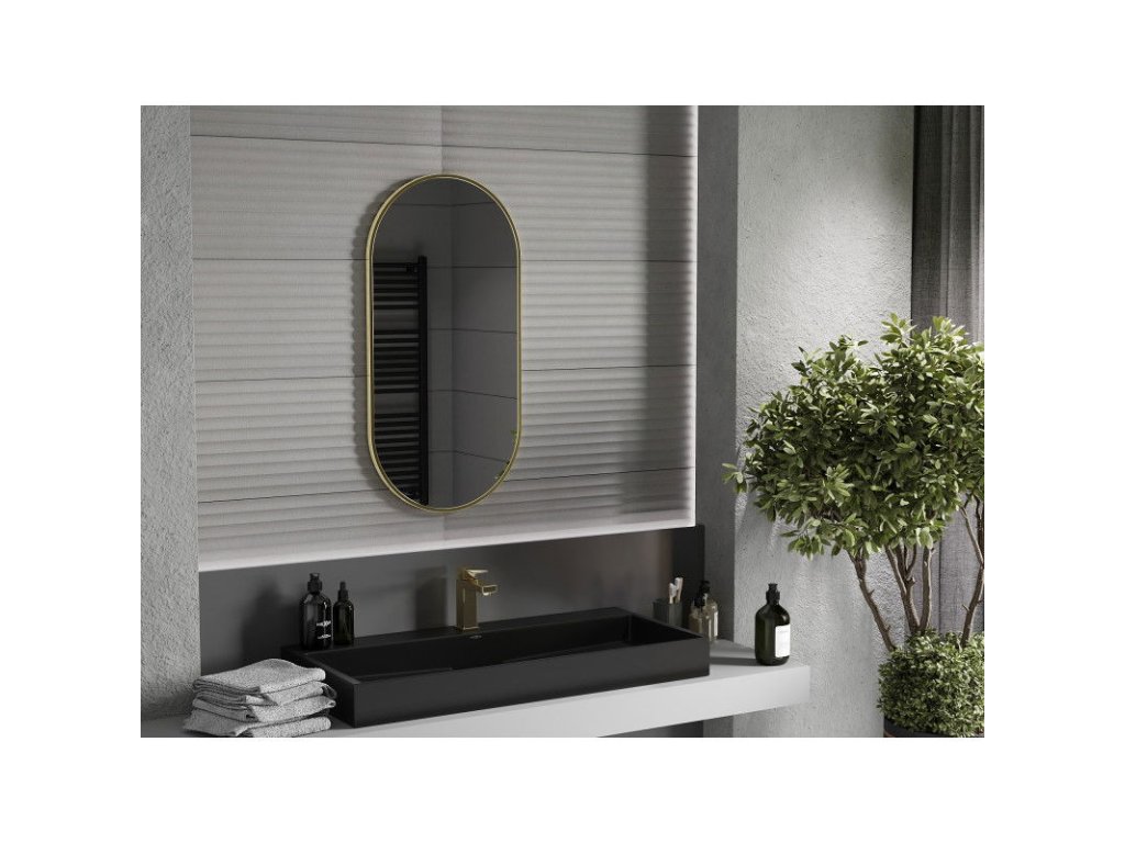 Mexen Loft oválne kúpeľňové zrkadlo 90 x 45 cm, zlatý rám - 9851-090-045-000-50