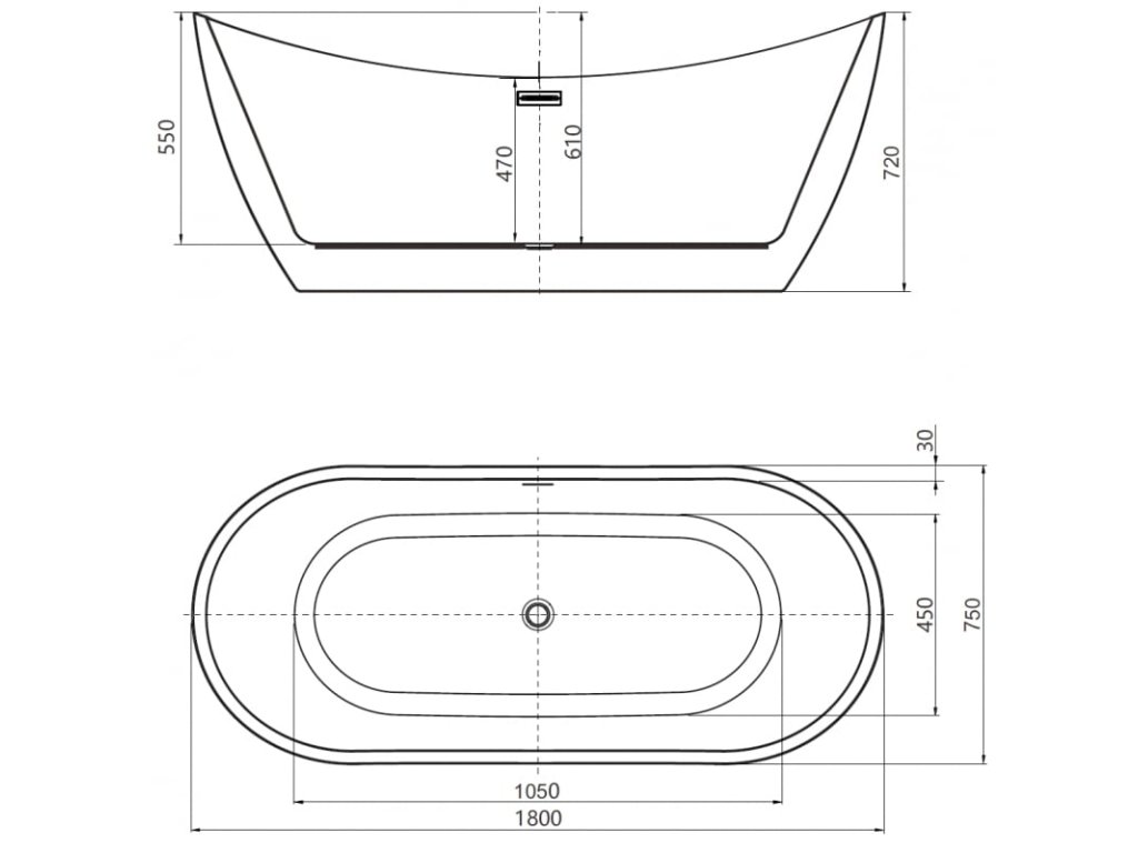 Mexen Lotos voľne stojaca vaňa 180 x 75 cm, biela/čierna, prepad z brúsenej medi - 52051807775-65