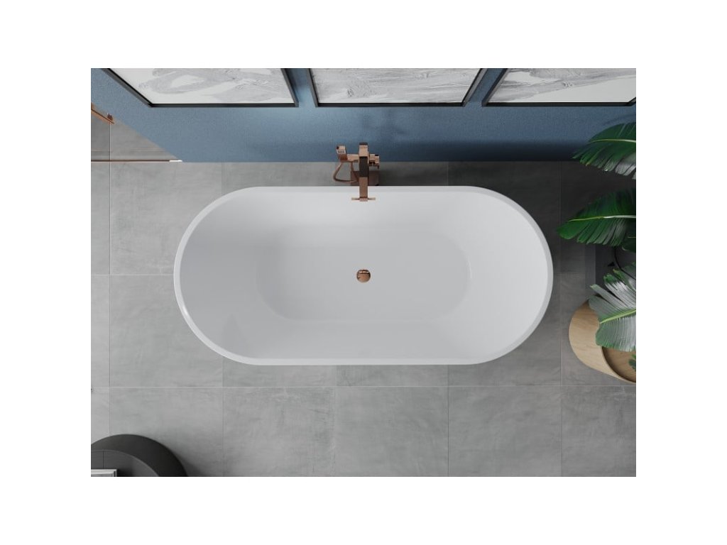 Voľne stojaca vaňa s rozmermi 160 x 75 cm je ideálnou voľbou do moderných kúpeľní. Je vyrobená zo sanitárneho akrylátu, má oválny tvar a lesklý povrch pre väčšiu eleganciu. Biela a čierna farba s dodatočnou ružovozlatou povrchovou úpravou vytvárajú jedinečný štýl. Vaňa je 58 cm vysoká a 45 cm hlboká na pohodlné používanie. Súčasťou balenia je sifón a zátka click-clack. Prepadový otvor a odolnosť proti zmatneniu sú ďalšími zaujímavosťami tohto výrobku.Dodatočné parametre