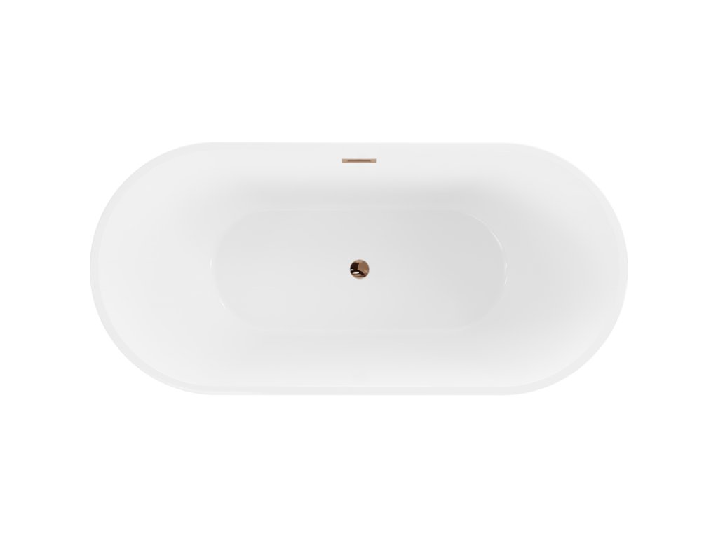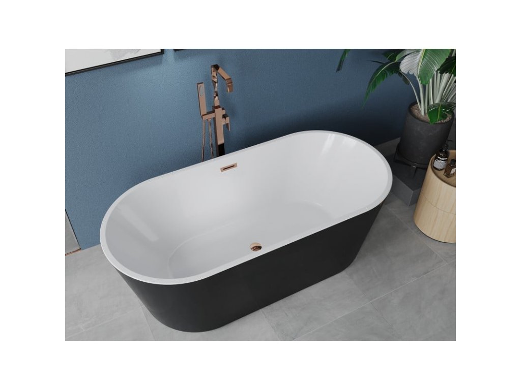 Voľne stojaca vaňa s rozmermi 170 x 80 cm v bielej a čiernej farbe je dokonalou kombináciou štýlu a funkčnosti. Je vyrobená zo sanitárneho akrylátu a poskytuje odolnosť proti zmatneniu a UV žiareniu. Oválny tvar a lesklý povrch dodávajú eleganciu, zatiaľ čo ružovozlatá povrchová úprava umocňuje moderný dizajn. Vaňa sa ľahko inštaluje a je vybavená prepadovým otvorom na pohodlné používanie. Súčasťou balenia je sifón a zátka s kliknutím.Dodatočné parametre